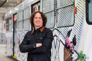 Kent Morris has been commissioned to create an iconic Melbourne Art Tram for the 2019 Melbourne International Arts Festival. The A-Class tram can be seen travelling about Melbourne for a year so keep an eye out for it or look up tram number 273 on the TramTRACKER app to find it on the network. Editioned prints of the original artwork are available in sizes 100 x 150 cm and 80 x 120cm. Contact Vivien Anderson Gallery for all enquiries.